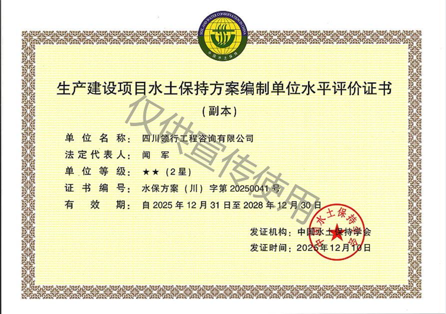 水土保持方案編制水平評價證書2星